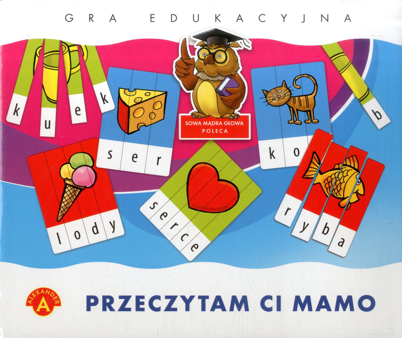 Przeczytam Ci mamo : gra edukacyjna. - Chwaszczyno : Alexander [2000?]. - 1 gra (wiele elementów) : karton, papier, kolorowy ; 24,5x20,5x5 cm.