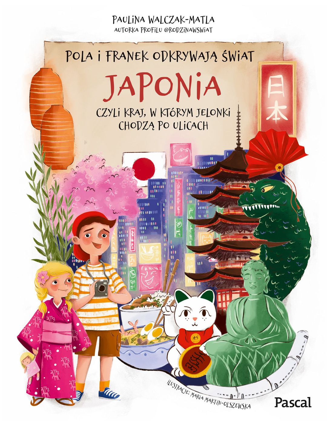 Cześć! To my: Pola i Franek. Razem z rodzicami zwiedzamy świat. Uwielbiamy poznawać nowe kraje i sposoby podróżowania. Polecimy samolotem do Japonii. W Tokio zobaczymy świątynię buddyjską i przywitamy się z Godzillą. Przejedziemy się tokijskim metrem i bardzo szybkim shinkansenem. Przymierzymy kimono i spróbujemy jeść sushi pałeczkami. W Kioto zwiedzimy bambusowy las i dowiemy się, jakie rzeczy można zrobić z bambusa. Zajrzymy do Nary, gdzie znajduje się ogromny posąg Buddy, a jelonki kłaniają się ludziom. Spróbujemy też lokalnych przysmaków. I oczywiście nie zapomnimy kupić pamiątkowego magnesu! Książka dla małych podróżników i ich rodziców. Dzięki niej dzieci będą chętniej odkrywały nowe miejsca i każda rodzinna wyprawa stanie się łatwiejsza! [od wydawcy]