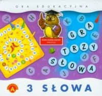 Zawartość gry: 117 żetonów z literkami, plansza do gry, 1 kostka, 4 pionki, instrukcja. "3 słowa" to emocjonująca, oparta na prostych zasadach, gra, która uczy i zmusza do myślenia. Celem tej gry jest jak najszybsze ułożenie 3 słów: trzyliterowego, czteroliterowego i pięcioliterowego. Każdy z graczy poruszając się swoim pionkiem po torze planszy stara się zebrać jak najwięcej żetonów - liter. Wygrywa ten, kto jako pierwszy ułoży z nich 3 słowa o właściwej ilości liter. [od wydawcy]