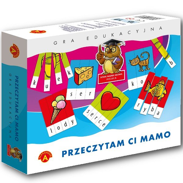 Przeczytam Ci mamo : gra edukacyjna. - Chwaszczyno : Alexander [2000?]. - 1 gra (wiele elementów) : karton, papier, kolorowy ; 24,5x20,5x5 cm.