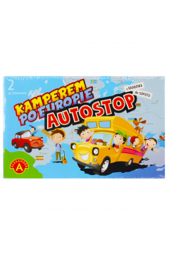 Zawartość gry: plansza dwustronna, 4 pionki, kostka (z liczbami 1,2,3), tabliczki- 112 sztuk, instrukcja. W grze „Kamperem po Europie” wszyscy gracze wsiadają do jednego kampera i wyruszają w podróż po naszym kontynencie. Wcielają się w rolę kierowców i podczas swojej zmiany odpowiadają za bezpieczeństwo całej wycieczki, a za każdy błąd ponoszą surowe konsekwencje. Wszyscy wczasowicze starają się podczas podróży zebrać jak najwięcej pamiątek, które gwarantują zwycięstwo. To świetna propozycja nauki poprzez zabawę, bo młodzi gracze mimowolnie zapamiętują położenie danych państw, kolory ich flag oraz nazwy stolic. Druga propozycja – „Autostop” – zabiera nas w podróż po Polsce. Wyprawa startuje z Krakowa, a ostatecznym celem jest Sopot. Uczestnicy starają się złapać jak najszybszy transport oraz omijać wszelkie pułapki, które czyhają na nich po drodze. Połączenie prostych zasad i dynamicznej rozgrywki przypadnie do gustu wielu dzieciom. [od wydawcy]